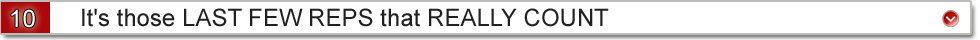 - During those last few reps when you can really feel your muscle getting tired, it is very important to remain focused on technique so that you continue to perform with correct technique and precision. In this way you will be sure to receive the full training benefit from your set, as well as avoid possible injury.