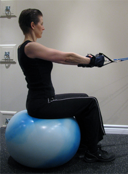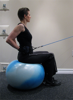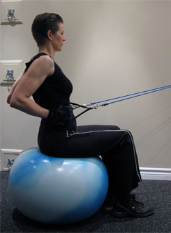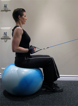 - If you are unable to anchor the tubing high enough to do this exercise effectively, you could try it sitting on an exercise ball.