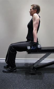 - Keep your wrists straight and rigid at all times. If you relax them at any time during the exercise and the weight of the dumbbells causes your wrists to bend you could strain the tendons or perhaps even break your wrist!