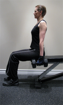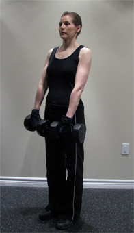 - To avoid excess strain on your shoulder joints, keep the dumbbells close to your body as you lift and lower them.