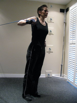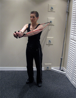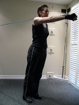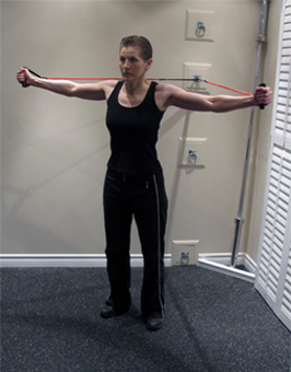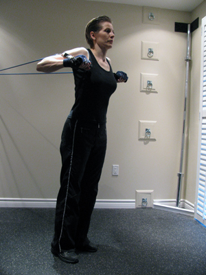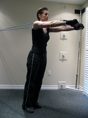 Standing Flyes with Tubing at Chest Height |