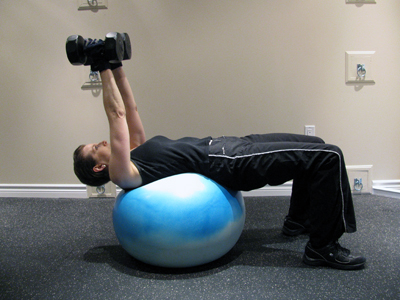 Dumbbell Chest Press on Workout Bench or Exercise Ball