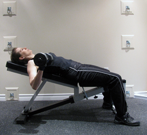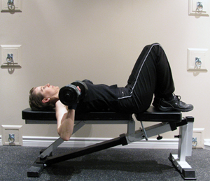 - Complete only as many repetitions as you can perform in a safe and controlled manner. Push yourself, but NEVER go to failure on this exercise as you could drop a dumbbell on your head and seriously hurt yourself.