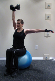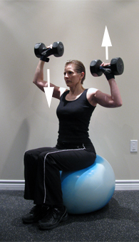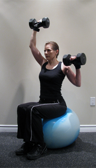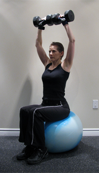 Dumbbell Overhead Shoulder Press on Stability Ball